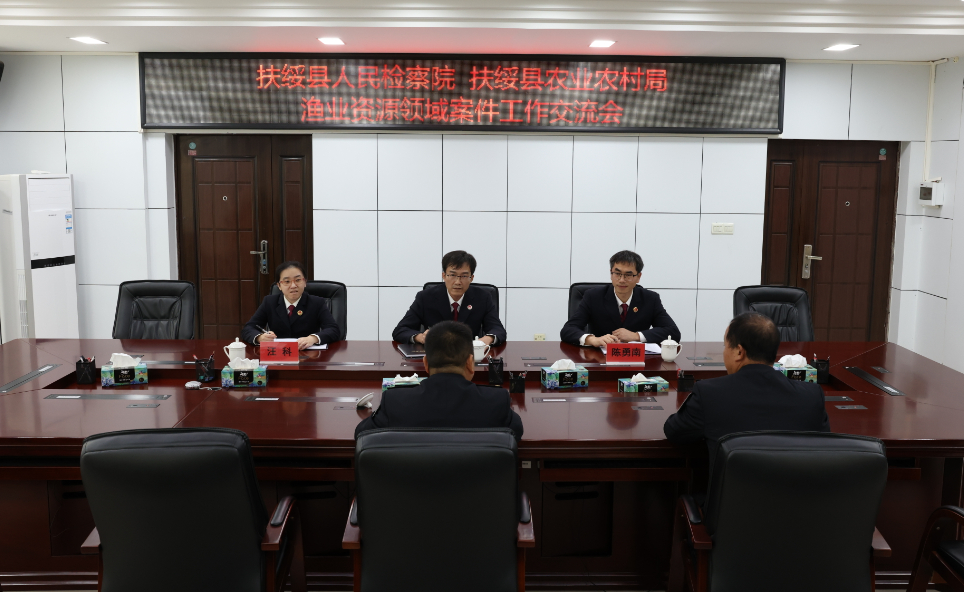 近年来,我院积极履行检察职能,依法严厉打击破坏渔业资源犯罪,通过公益诉讼修复受损渔业资源,保护生态环境。截至目前,我院已办理涉及渔业资源公益诉讼案件35件,督促当事人增殖放流鱼苗22万多尾,取得良好效果。 2023年的禁渔期即将开始,为更好推动扶绥县渔业资源和生态环境保护工作,着力提升检察工作质效,2023年2月14日,我院与县农业农村局举行渔业资源领域案件工作交流会,就相关工作开展深入交流。