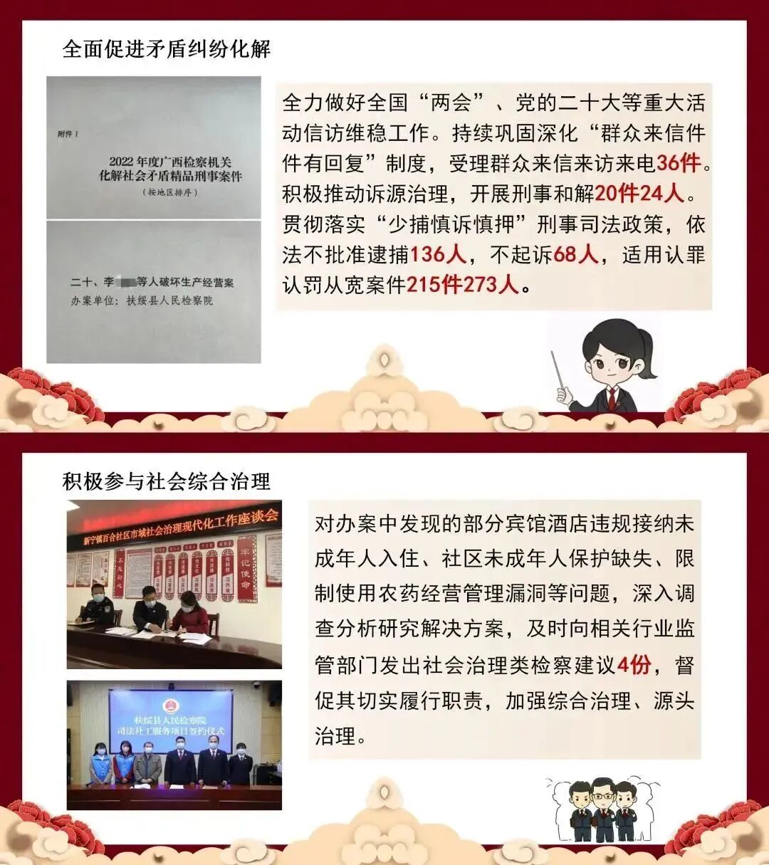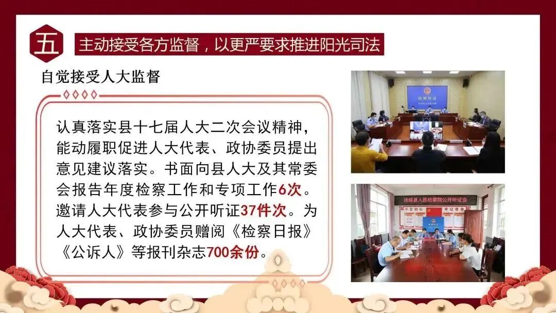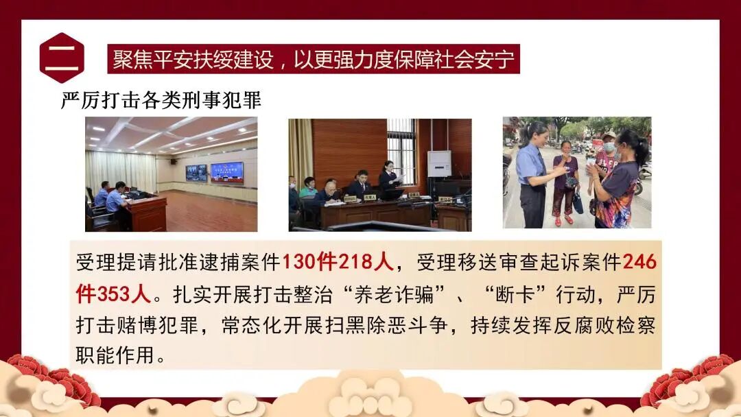 2023年2月9日,在扶绥县第十七届人民代表大会第三次会议上,扶绥县人民检察院检察长黄芳玲向大会报告检察院工作。 2022年,扶绥县人民检察院在县委和上级检察院的坚强领导下,在县人大及其常委会的有力监督下,在县政府、县政协以及社会各界的关心支持下,坚持以习近平新时代中国特色社会主义思想为指导,全面贯彻落实习近平法治思想,深入学习贯彻党的十九大、十九届历次全会以及党的二十大精神,认真落实“疫情要防住、经济要稳住、发展要安全”重要要求,把坚决拥护“两个确立”、忠诚践行“两个维护”贯穿检察工作各方面、全过程,紧紧围绕县委县政府“全面建成全区县域经济第一强县”总目标和“提速增量 晋位争先”年度目标,努力推动“质量建设年”各项检察工作落实。日博365怎么样_365_体育投注英超和欧冠_365彩票客户端下载
