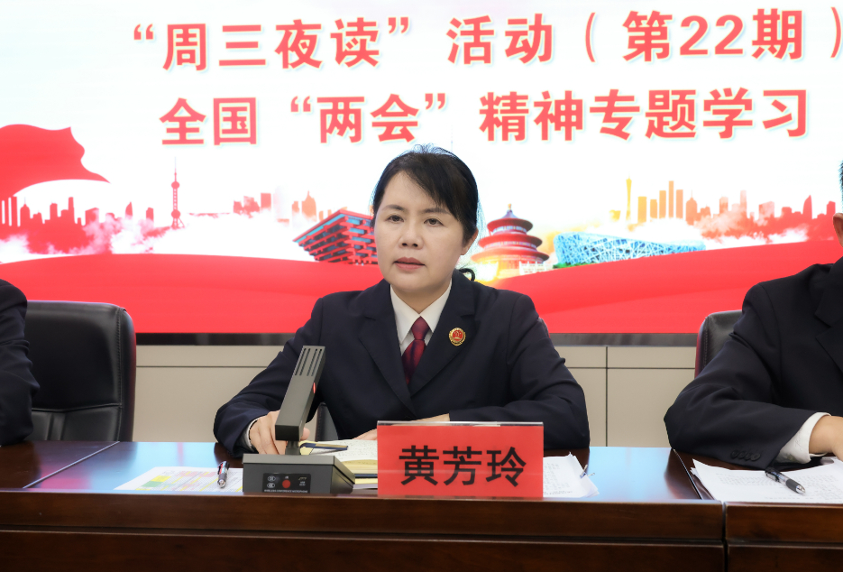 为深入学习贯彻全国两会精神,激励全体干警提振精神、勇于担当、能动履职,以更高的责任感和使命感,推动扶绥检察工作再上新台阶。3月15日晚,扶绥县检察院组织开展第22期建设新时代机关学习型党组织“周三夜读”活动,专题学习习近平总书记在全国两会期间系列重要讲话精神以及全国两会有关文件精神。日博365怎么样_365_体育投注英超和欧冠_365彩票客户端下载 会上,全体干警观看了习近平总书记在参加江苏代表团审议和出席解放军和武警部队代表团全体会议发表的重要讲话等视频。院党组书记、检察长黄芳玲传达学习了习近平总书记在第十四届全国人大一次会议闭幕会上的重要讲话精神及十四届全国人民代表大会第一次会议关于政府工作报告、关于全国人民代表大会常务委员会工作报告和关于最高人民检察院工作报告的三个决议。  日博365怎么样_365_体育投注英超和欧冠_365彩票客户端下载黄芳玲检察长在总结讲话时,就深化学习全国两会精神提出要求: 把学习全国两会精神尤其是习近平总书记在全国两会期间系列重要讲话精神和学习贯彻党的二十大精神作为当前和今后一个时期的重要工作来抓实抓细,通过党组示范引领学、专题研讨学和融入活动创新学等形式,切实将理论成果武装头脑、指导实践、推动工作。 要紧盯全年各项任务目标,进一步增强工作责任感、紧迫感,在做优做强各项检察业务上不断实现新突破。运用清单工作法,列出轻重缓急,逐项销号推进各项工作稳步前进。把牢案件质量这条生命线,用心用情办好每一个案件,提升法律监督质效。 全体干警要提振精气神,凝聚力量,聚焦重点,要瞄准短板,精准发力,突破瓶颈,坚定信心、鼓足干劲,主动把检察工作融入全县发展大局,找准检察服务大局的发力点、结合点,以高质量检察履职助力全区县域经济第一强县建设。