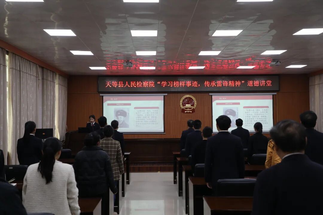 今年是毛泽东等老一辈革命家为雷锋同志题词60周年。近日,为进一步传承和弘扬雷锋精神,天等县检察院组织开展“学习榜样事迹,传承雷锋精神”为主题的道德讲堂活动,天等县检察院全体检察干警参加活动。