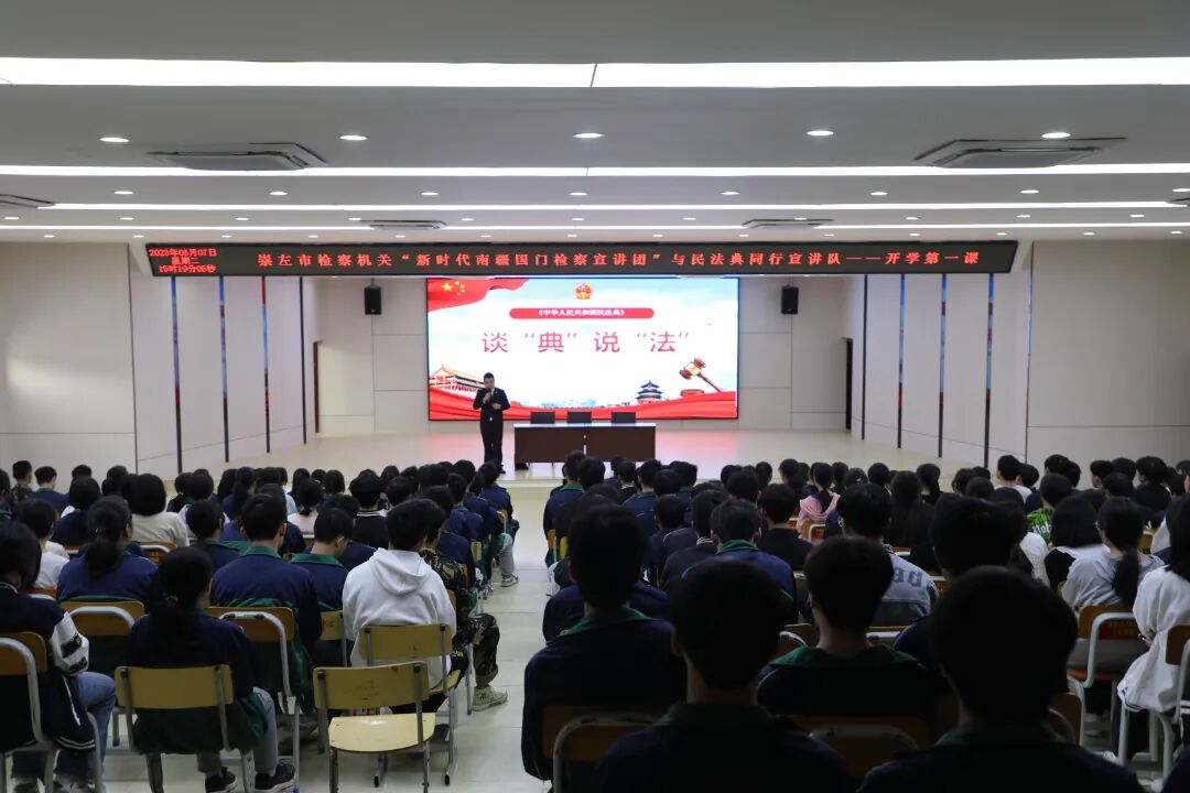 活动中,天等县检察院第二检察部检察官助理许大兴结合检察机关工作职能,向同学们讲解与未成年人相关的民法典知识,引导同学们认识自己的民事权利义务、行为能力,了解受到身体损害时的救济途径,提高自我保护意识。天等县烟草专卖局普法宣讲团成员杨骁通过现场讲解、交流互动等形式讲解了烟草、电子烟的危害等禁烟知识,让同学们更深刻认识到吸烟对健康的危害。