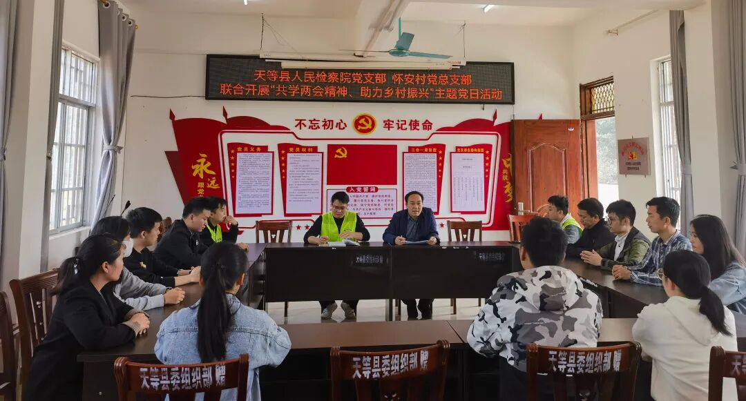 阳春三月,春意盎然。为深入学习贯彻全国“两会”精神,引导支部党员积极关注国计民生,在助推乡村振兴工作中更好地发挥党员的模范带头作用。3月17日,天等县人民检察院党支部组织党员来到挂点帮扶村把荷乡怀安村,开展“共学两会精神、助力乡村振兴”主题党日活动。