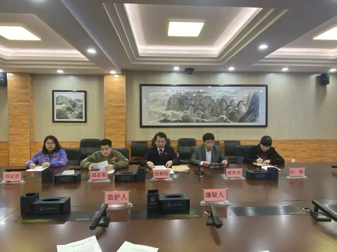 会上,承办检察官向冯某某的监护人宣读《监护督促令》,指出其在日常监管中法定的监护职责存在的问题,并将《监护督促令》当场送达。随后,承办检察官与县教育局、县民政局、团县委代表共同对冯某某及其监护人开展亲职教育。
